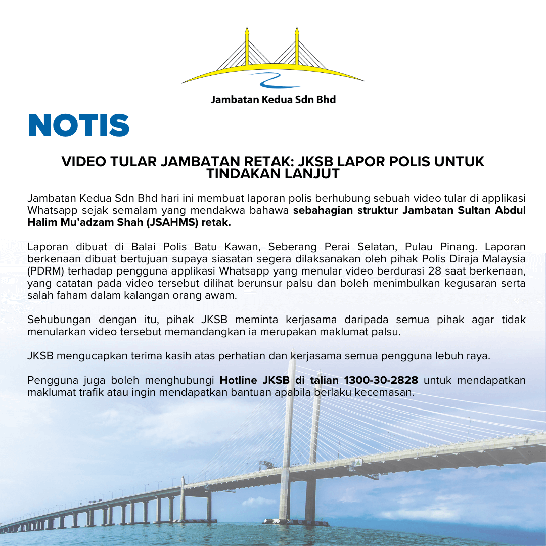 Jambatan Kedua Admin Berita Wilayah Related postsJKSB, Jabatan Perikanan pupuk semangat pulihara habitat penyu1 Feb 23JKSB rai 50 anak yatim dengan persiapan Aidilfitri4 Apr 23Video Tular Jambatan Retak: JKSB Lapor Polis Untuk Tindakan Lanjut30 Oct 23 Previous postDua lorong manual RFID dibuka di Plaza Tol Bandar CassiaNext postDua lorong manual RFID dibuka di Plaza Tol Bandar Cassia