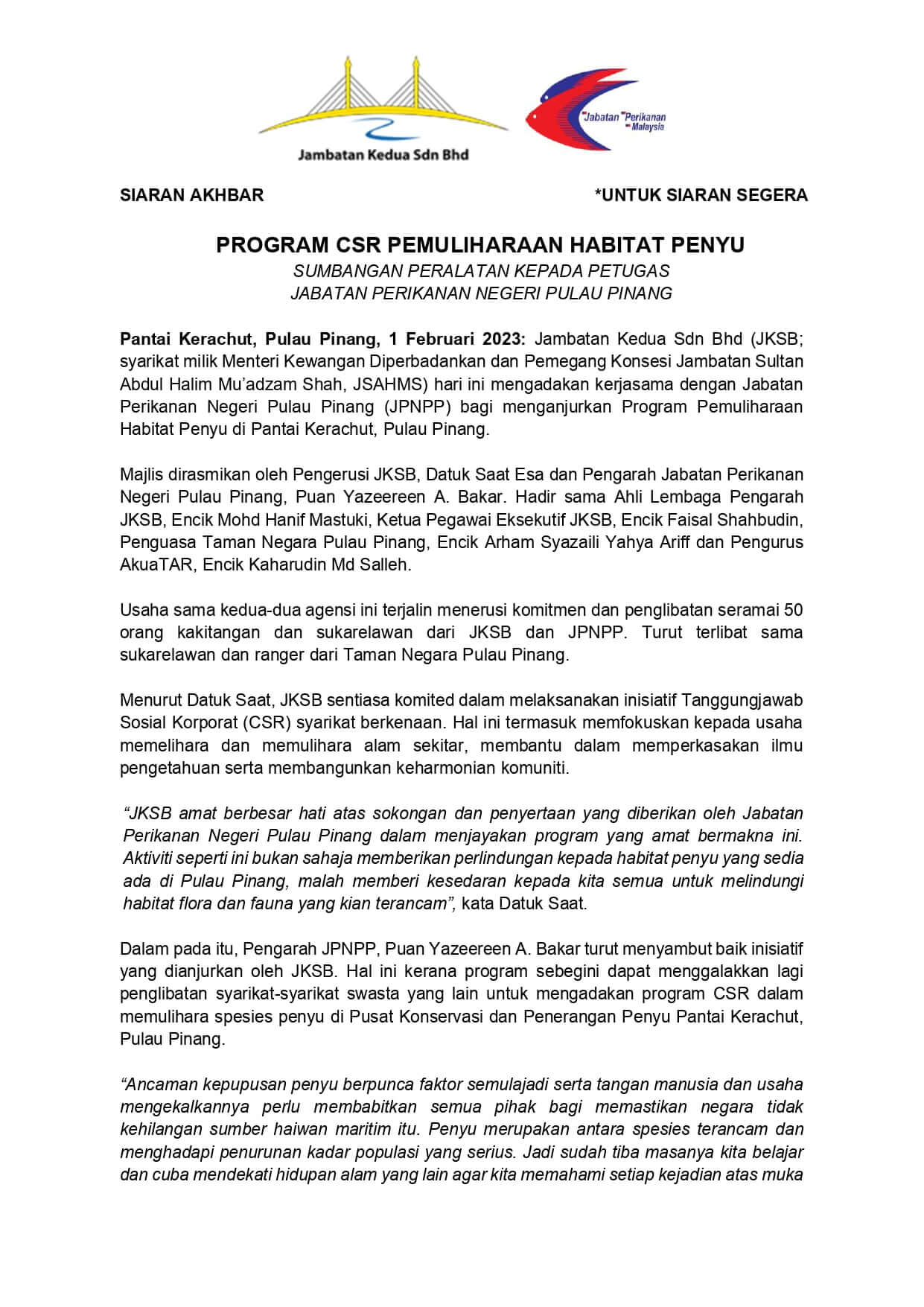 JKSB, Jabatan Perikanan pupuk semangat pulihara habitat penyu