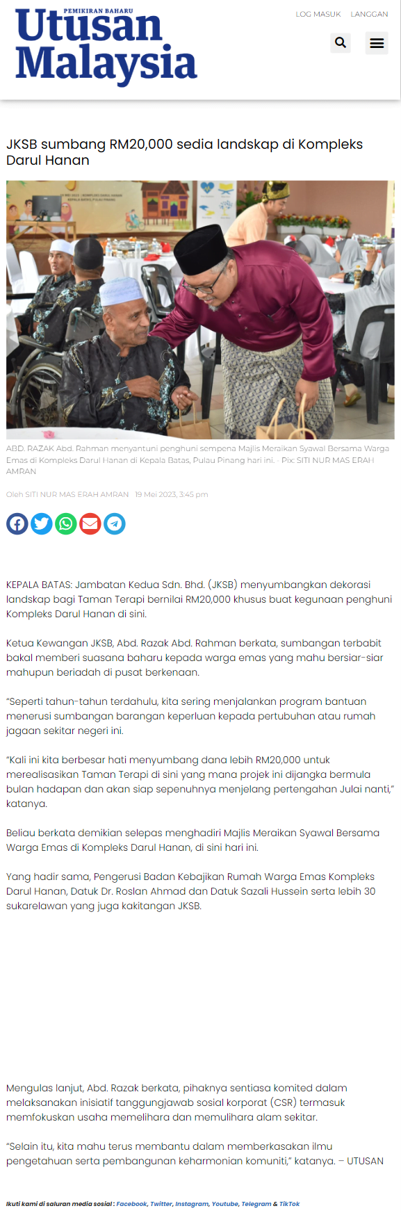 Jambatan Kedua Admin Utusan Malaysia Related postsNOTIS KENYATAAN SEBUT HARGA ASET ALIH9 May 25Press Release | Program Shopping Spree Aidilfitri4 Apr 23Sebahagian Jambatan Kedua Pulau Pinang bermula malam Sabtu16 Oct 23 Previous postJKSB sumbang RM20,000 sedia landskap Taman Terapi Darul HananNext postPolis bantuan maut dirempuh lori ketika bantu kereta rosak